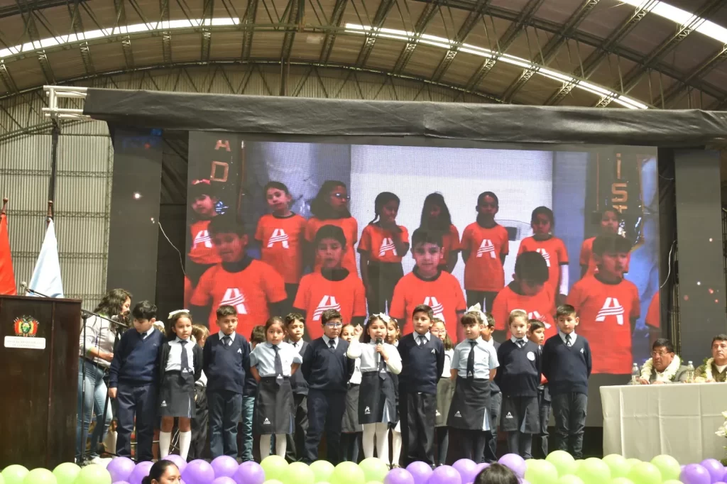 Durante la socialización, los estudiantes del Colegio Adventista de Cochabamba presentaron un tema musical de concientización sobre la importancia de identificar casos de agresiones en entornos digitales.