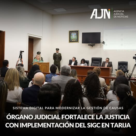 Tarija, 13 de abril de 2026 (AJN).- En el marco de la política institucional de modernización de la justicia, el Órgano Judicial presentó en el departamento de Tarija el Sistema Informático de Gestión de Causas (SIGC), en su primera etapa orientada a delitos de acción privada, como parte del proceso de transformación digital del sistema penal en el país.